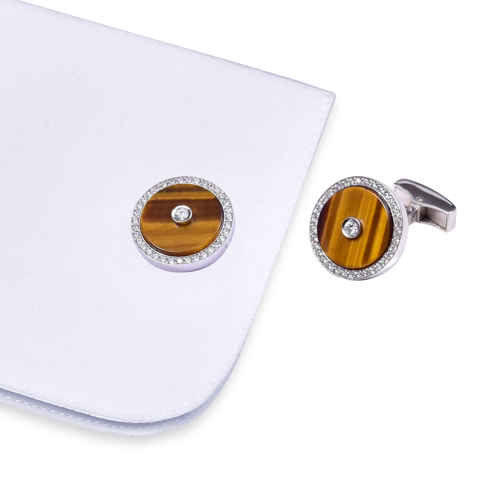 Silver Kol Düğmesi Değerli Taşlar Özel Tasarım 925 Ayar Gümüş Kaplan Gözü Doğal Taş Swarovski Taşlar El Yapımı Mıhlama