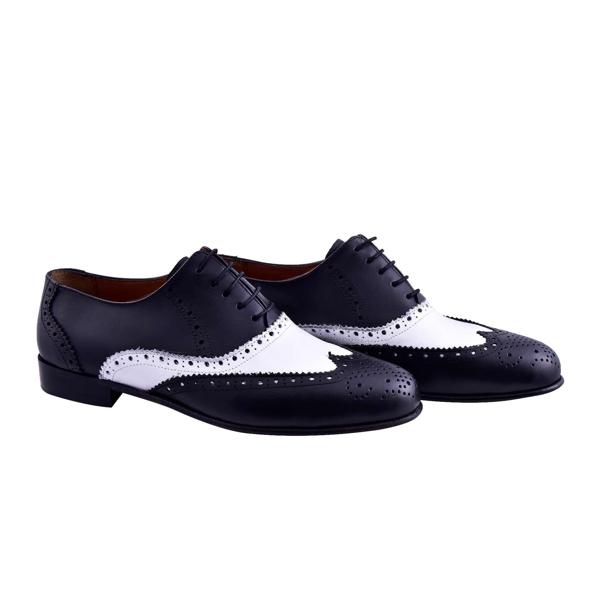 Siyah Beyaz Zımbalı Deri Ayakkabı